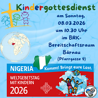 Herzliche Einladung zum nächsten Kindergottesdienst am Sonntag, 08.03.2026 um 10.30 Uhr in den Bereitschaftsraum des BRK Bärnau (Pfarrgasse 9).